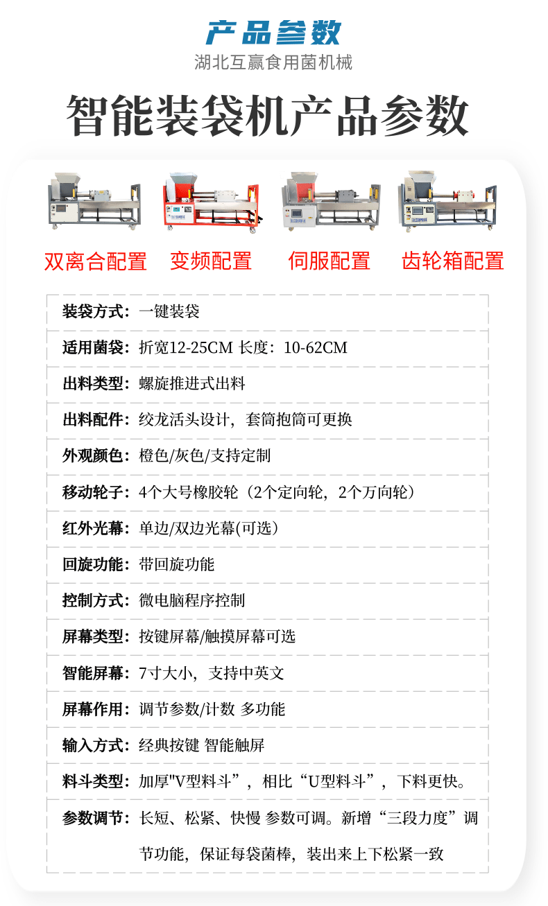 近年來(lái)代料香菇裝袋機(jī)的發(fā)展,越來(lái)越迅猛。其規(guī)模不斷擴(kuò)大,品種不斷增多,地域限制越來(lái)越少。是農(nóng)民增收的可靠保障,也是地方政府的經(jīng)濟(jì)支柱。自動(dòng)套袋食用菌裝袋機(jī)廣泛用在香菇、木耳、平菇、金針菇、茯苓、灰樹(shù)花、姬菇、秀珍菇等食用菌種植領(lǐng)域。是工廠、基地、合作社、家庭農(nóng)場(chǎng)理想的工廠化生產(chǎn)機(jī)械。生產(chǎn)規(guī)模的大小可根據(jù)資金、銷售量、經(jīng)營(yíng)方式、技術(shù)力量、資源條件等綜合因素來(lái)確定,可用單機(jī),也可組合設(shè)計(jì)成半機(jī)械化...